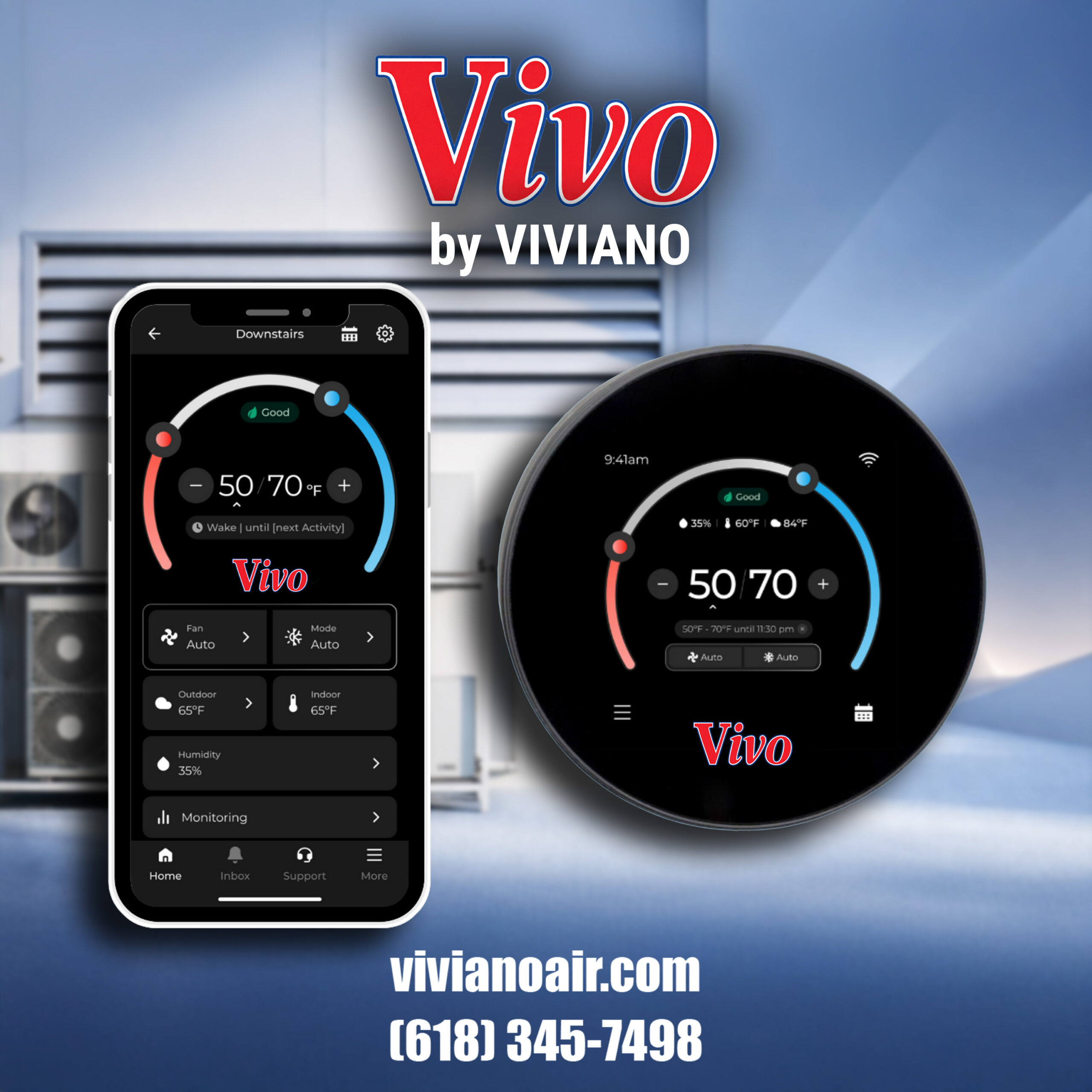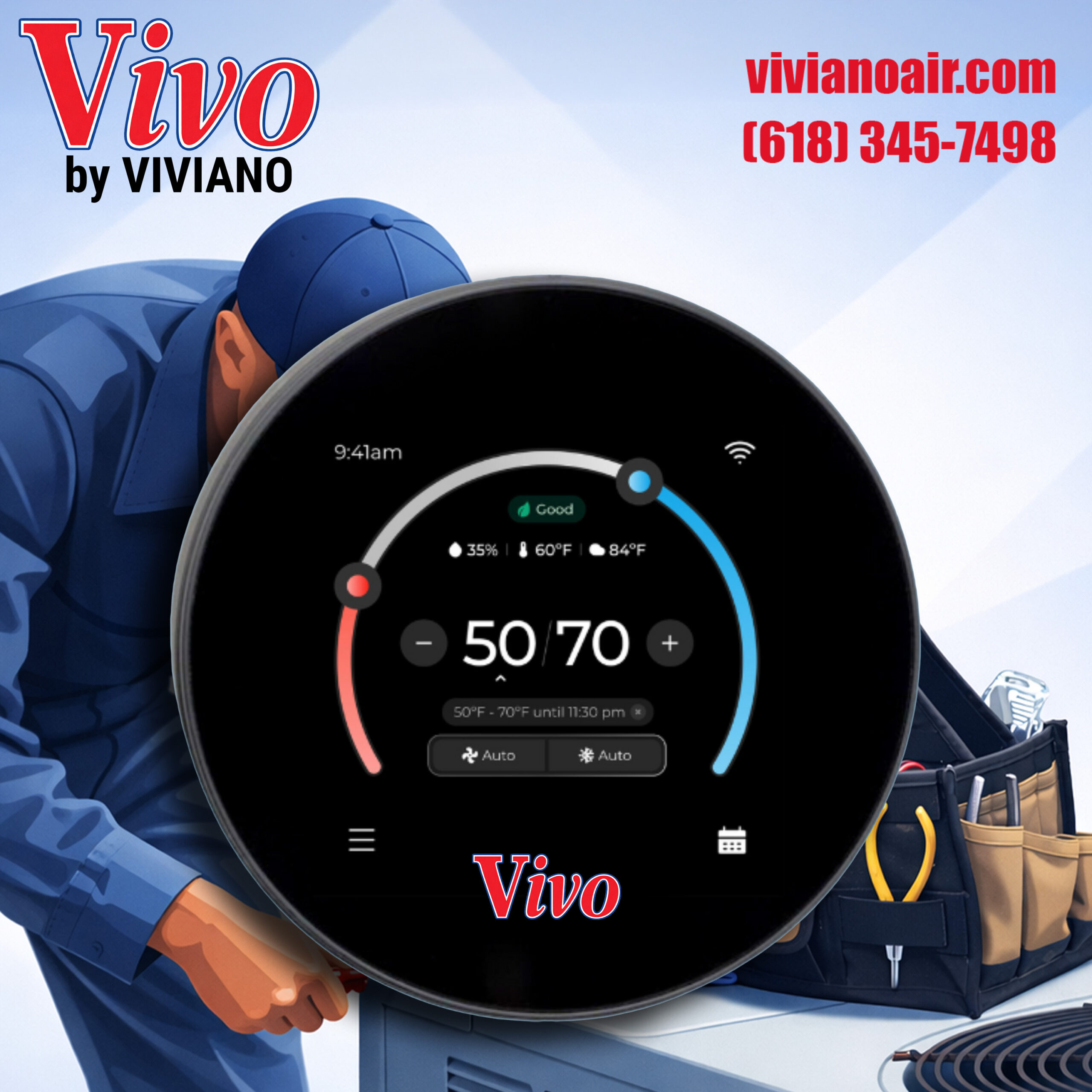 Upgrade your system with the Vivo Smart Thermostat and enjoy effortless climate control, energy savings, and expert support—built right into one powerful device.